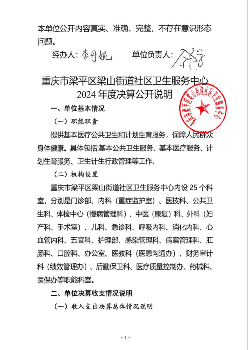 | 标题 | 重庆市梁平区梁山街道社区卫生服务中心2024年度决算公开说明 |