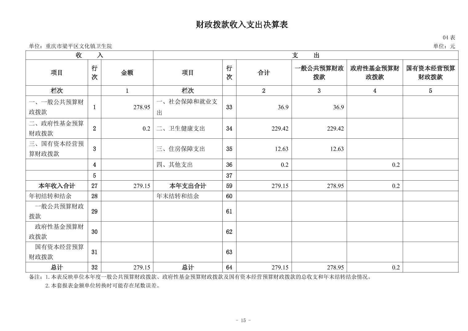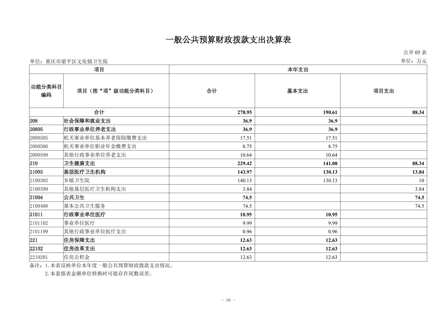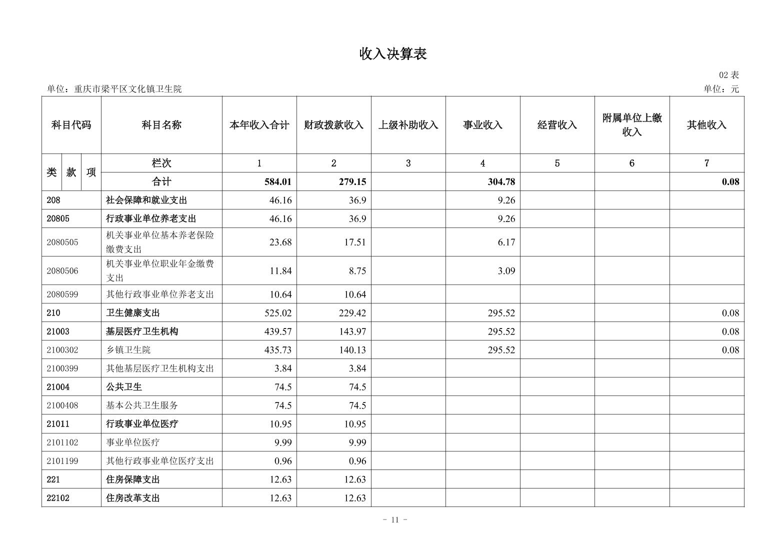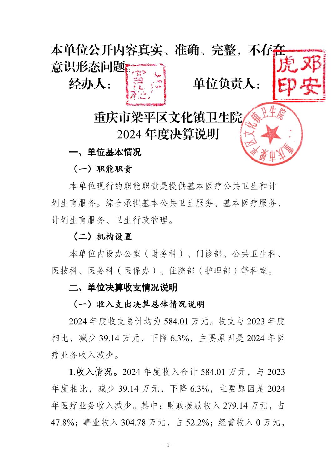 标题 | 重庆市梁平区文化镇卫生院2024年度决算公开说明 |