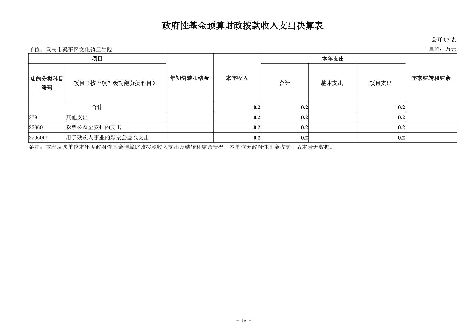 标题 | 重庆市梁平区文化镇卫生院2024年度决算公开说明 | ||