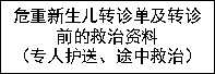 转诊途中,应由熟悉病情的医务人员携带相关病历资料和《重庆市危重新生儿转诊单》护送(见附件2)。护送人员必须在介绍完病情并办理好相关转诊手续经接诊医院同意后方可离开。