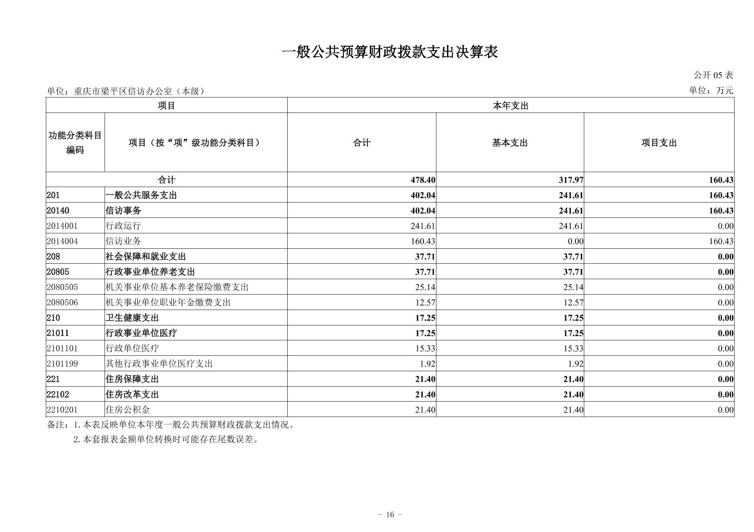 标题 | 重庆市梁平区信访办公室(本级)2024年度决算公开说明 | ||