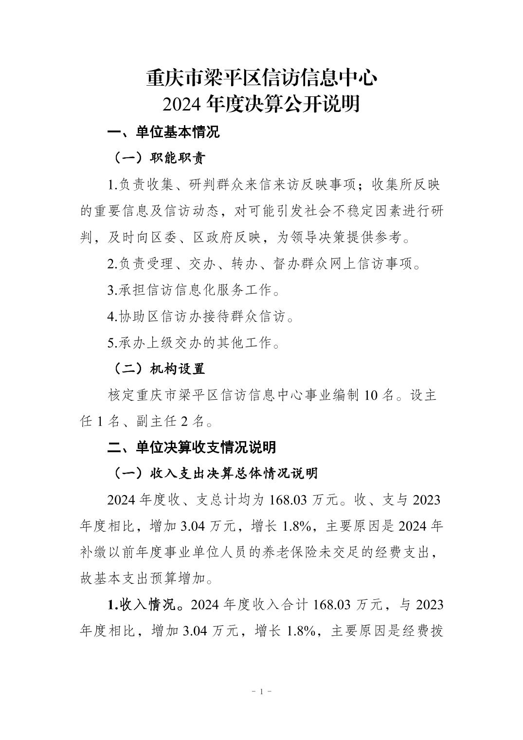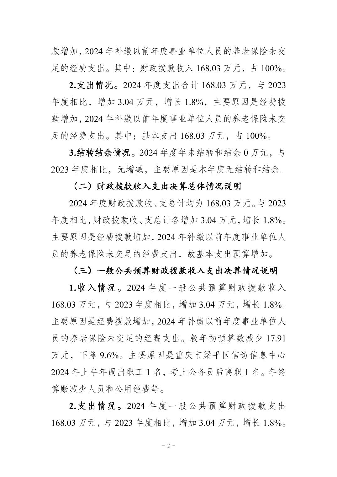 标题 | 重庆市梁平区信访信息中心2024年度单位决算公开说明 |