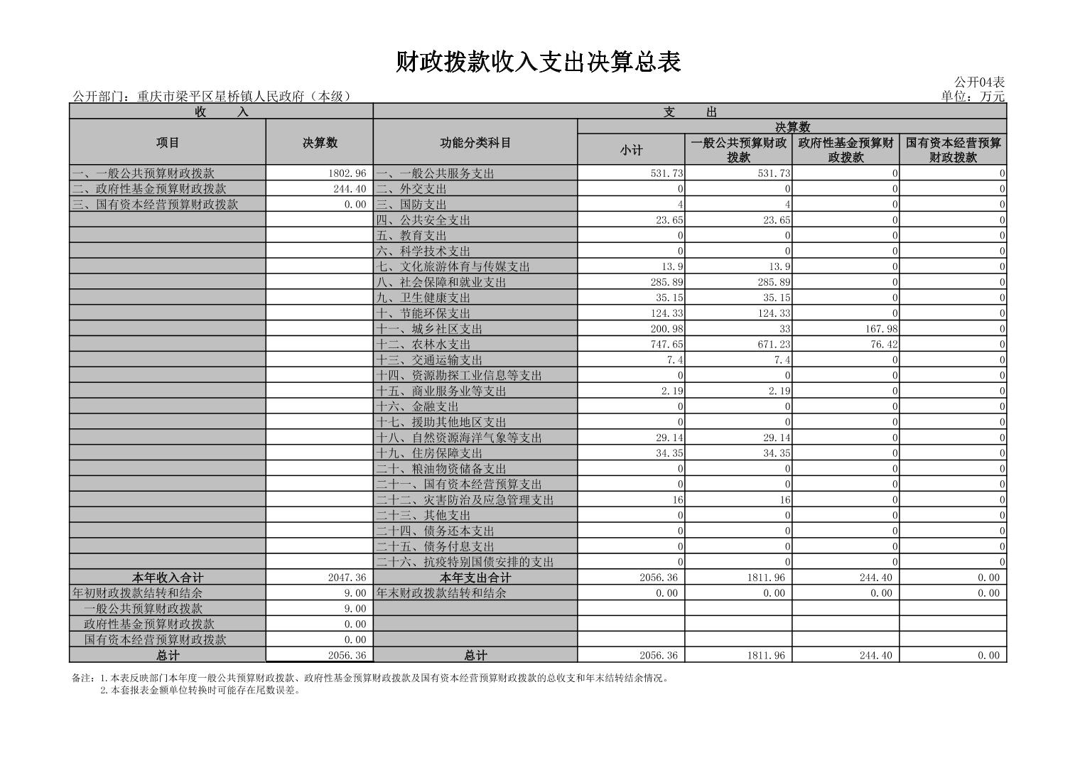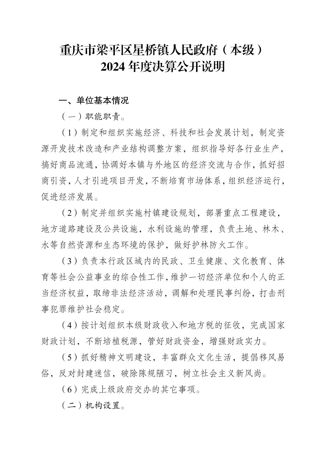 标题 | 重庆市梁平区星桥镇人民政府(本级)2024年度决算公开说明 |