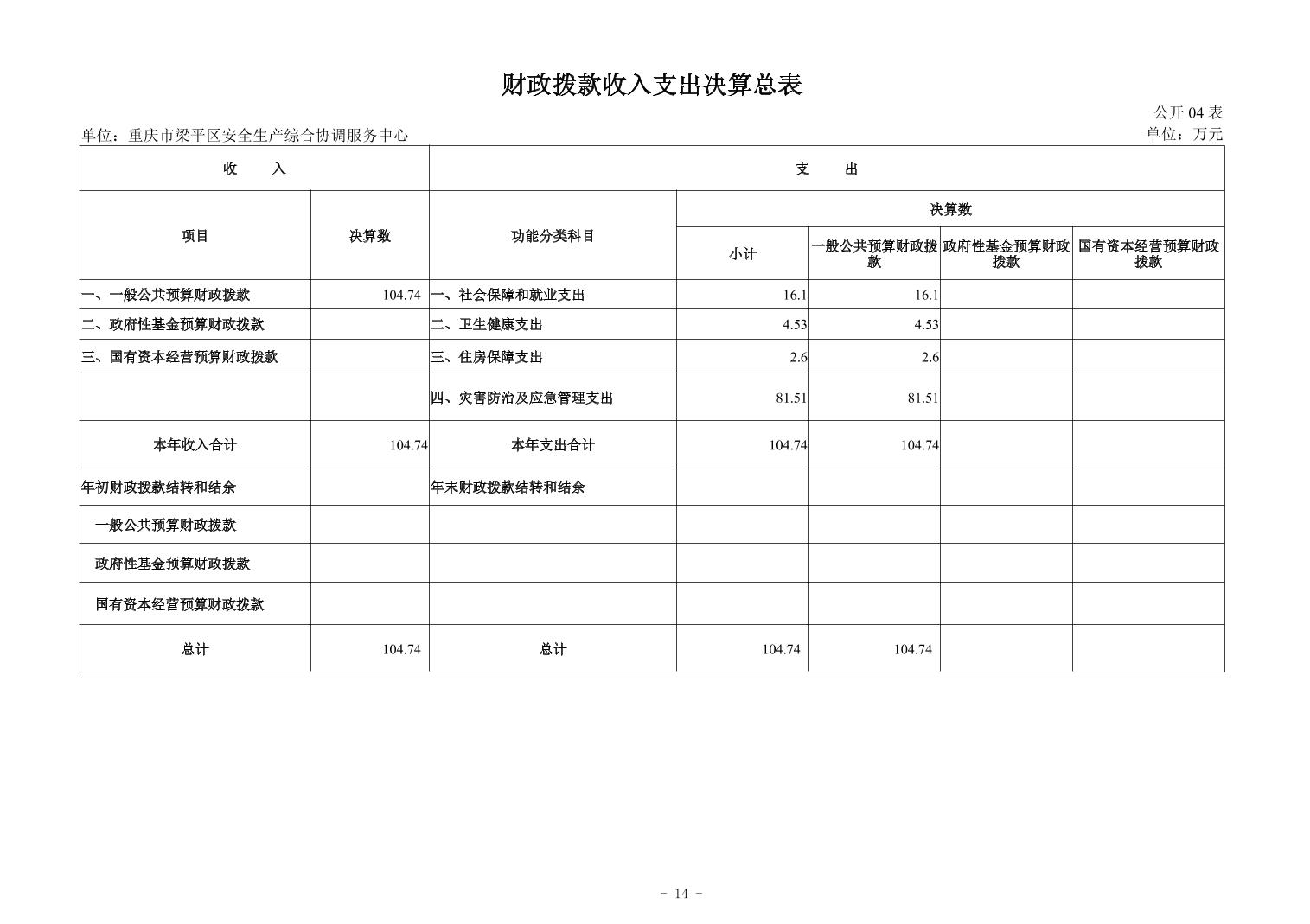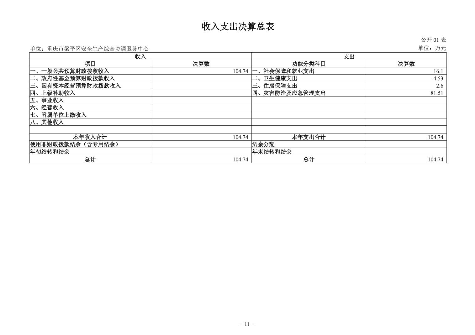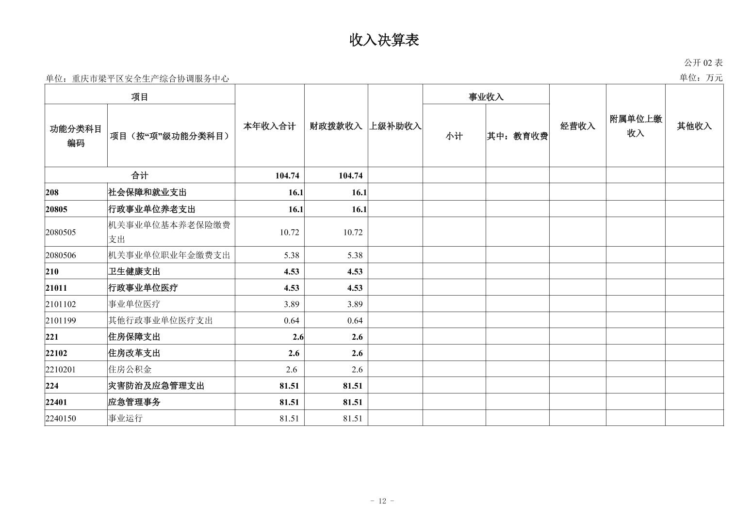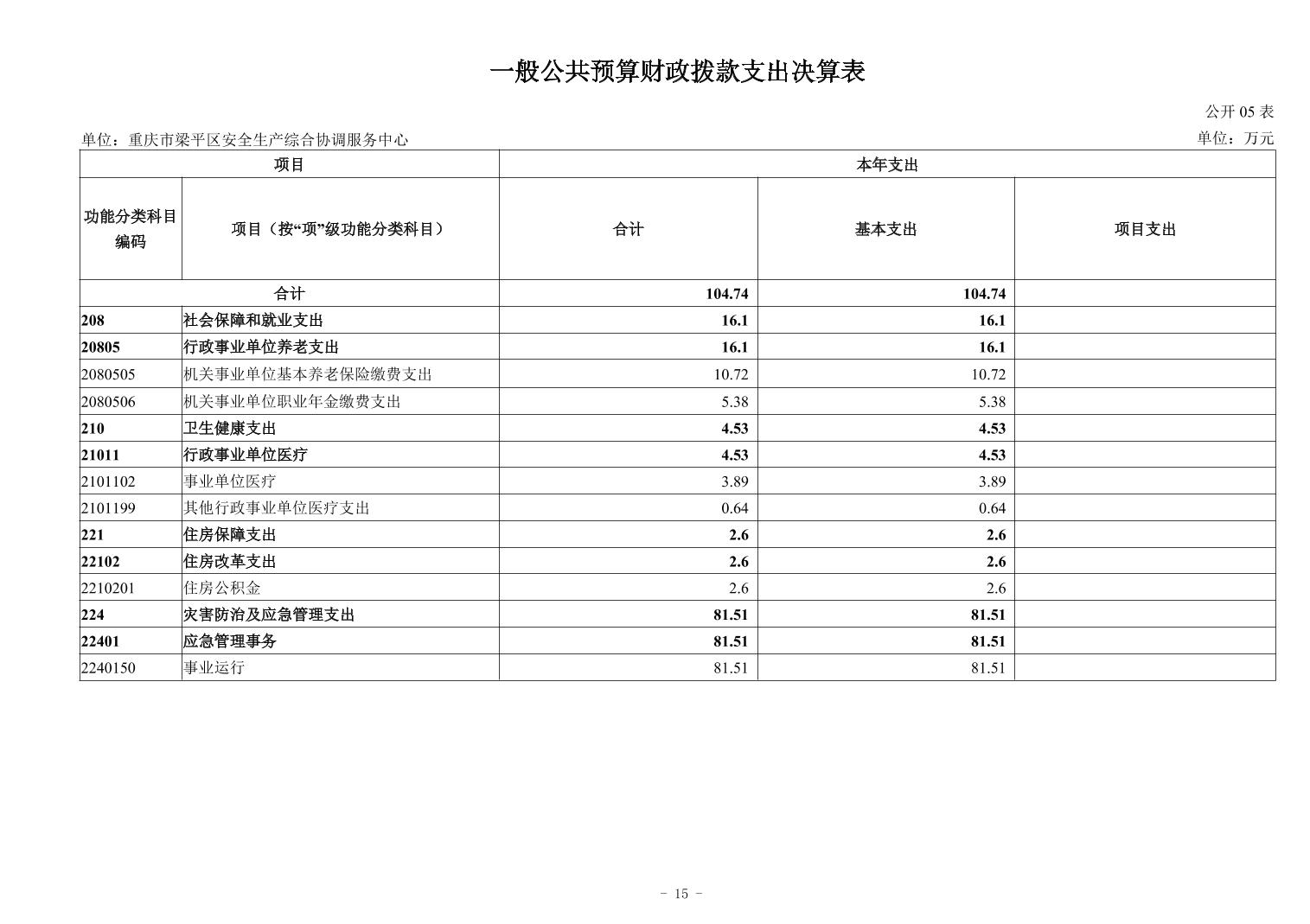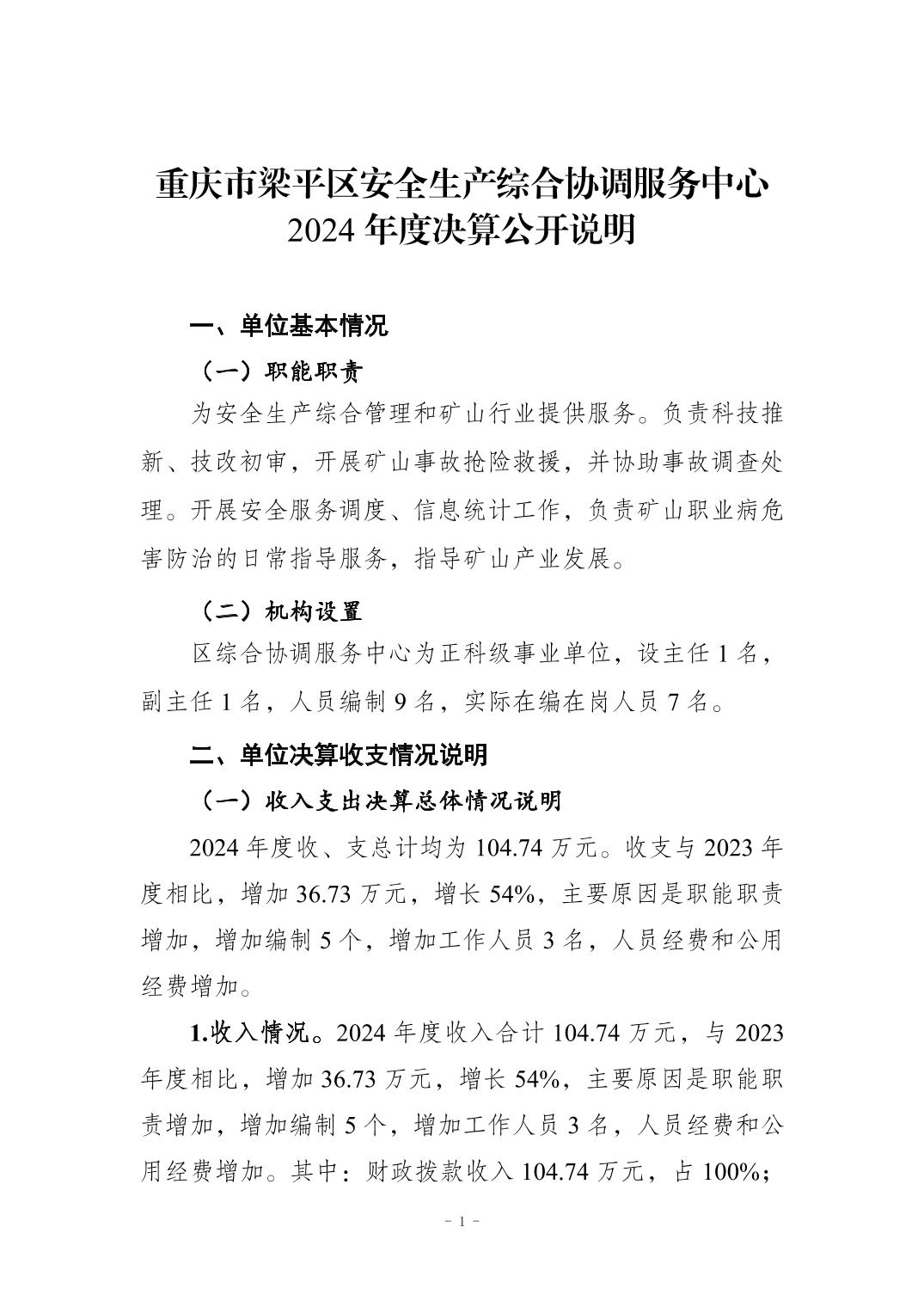 标题 | 重庆市梁平区安全生产综合协调服务中心2024年度决算公开说明 |