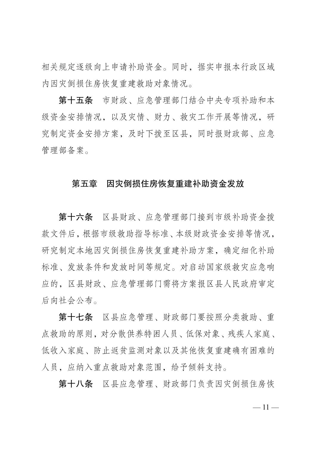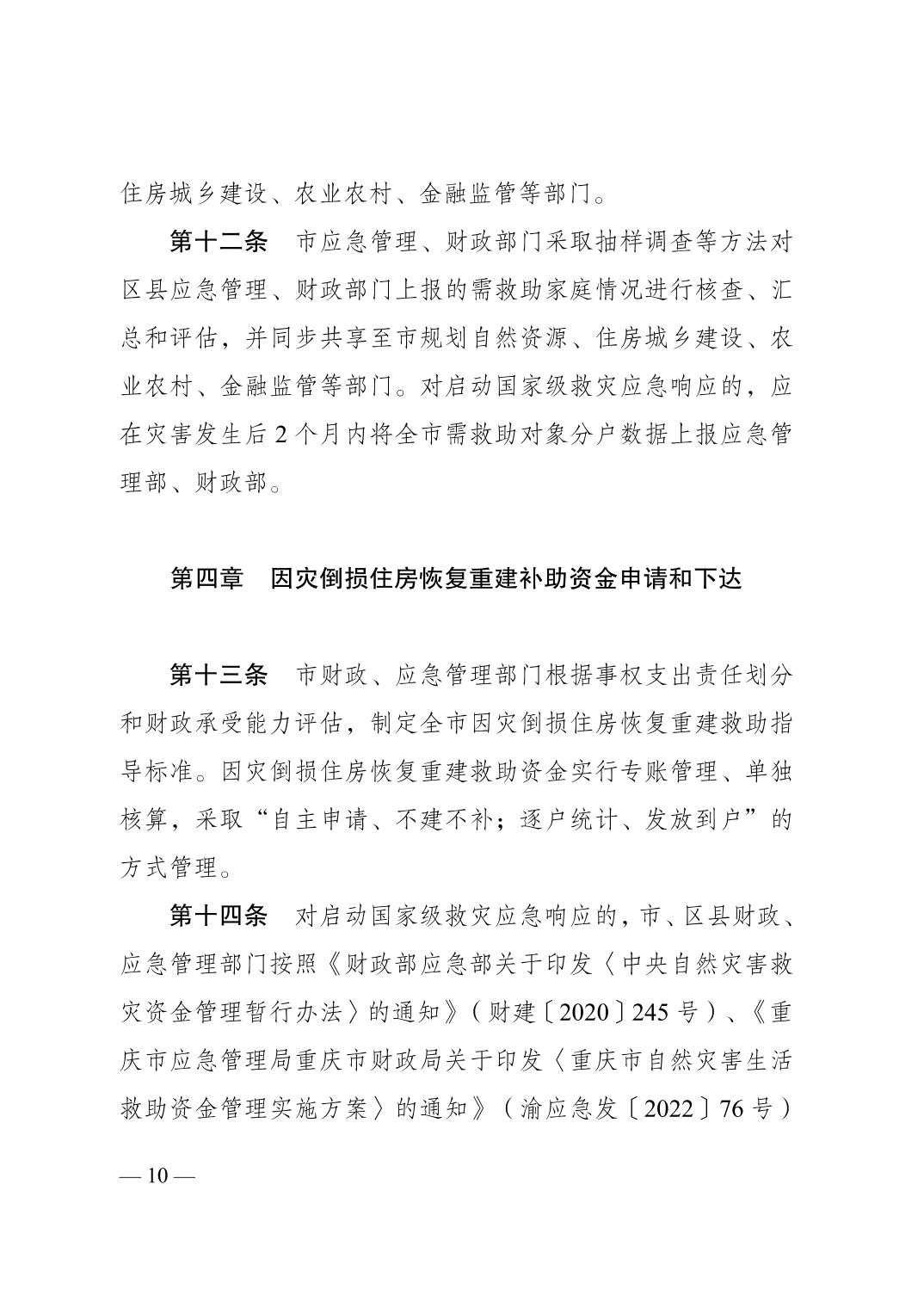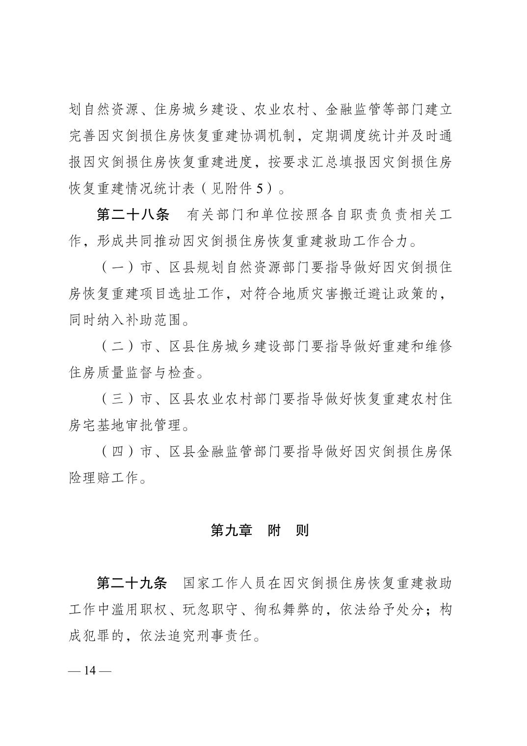重庆市梁平区减灾委员会办公室关于转发《重庆市因灾倒损住房恢复重建救助 工作办法(试行)》的通知