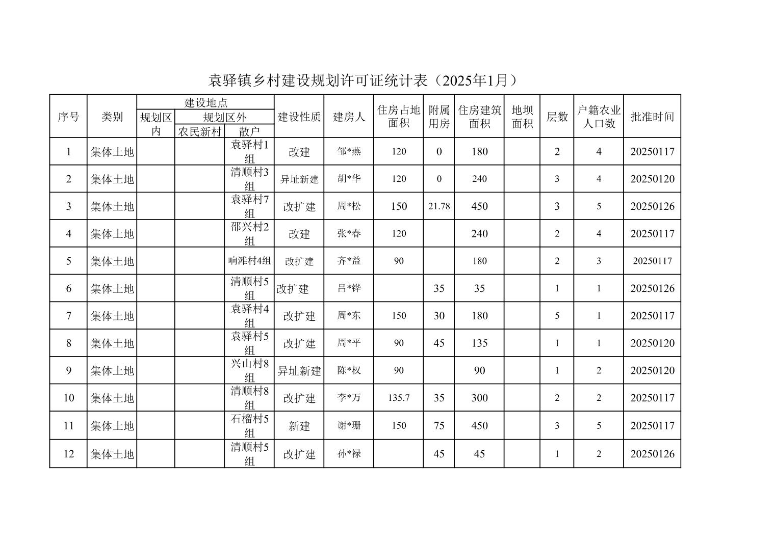 | 标题 | 袁驿镇乡村规划许可证统计情况公示(1月) |