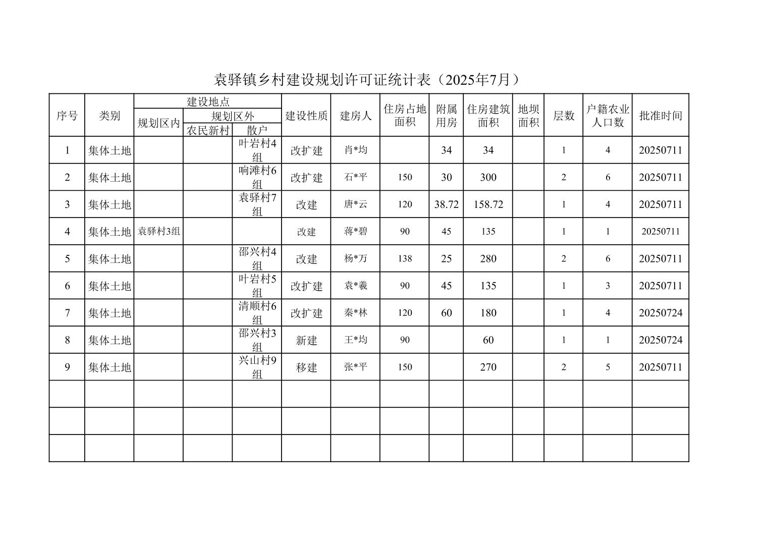 | 标题 | 袁驿镇乡村规划许可证统计情况公示(7月) |