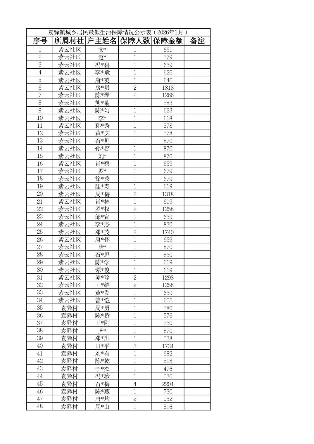 | 标题 | 袁驿镇城乡居民最低生活保障情况公示表(2026年1月) | ||