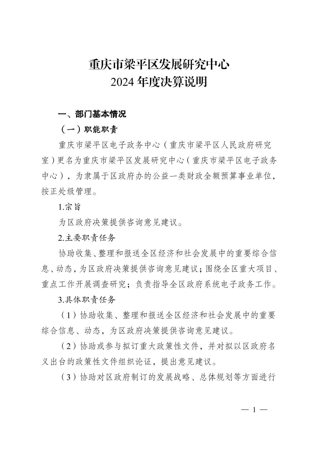标题 | 重庆市梁平区发展研究中心2024年度决算说明 | ||