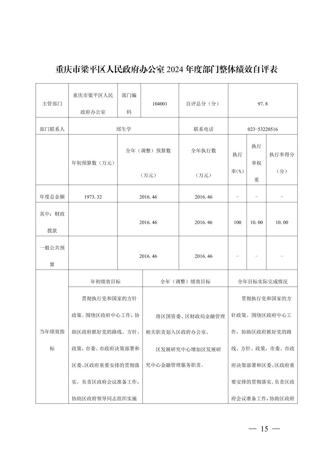 标题 | 重庆市梁平区人民政府办公室2024年度决算说明 |