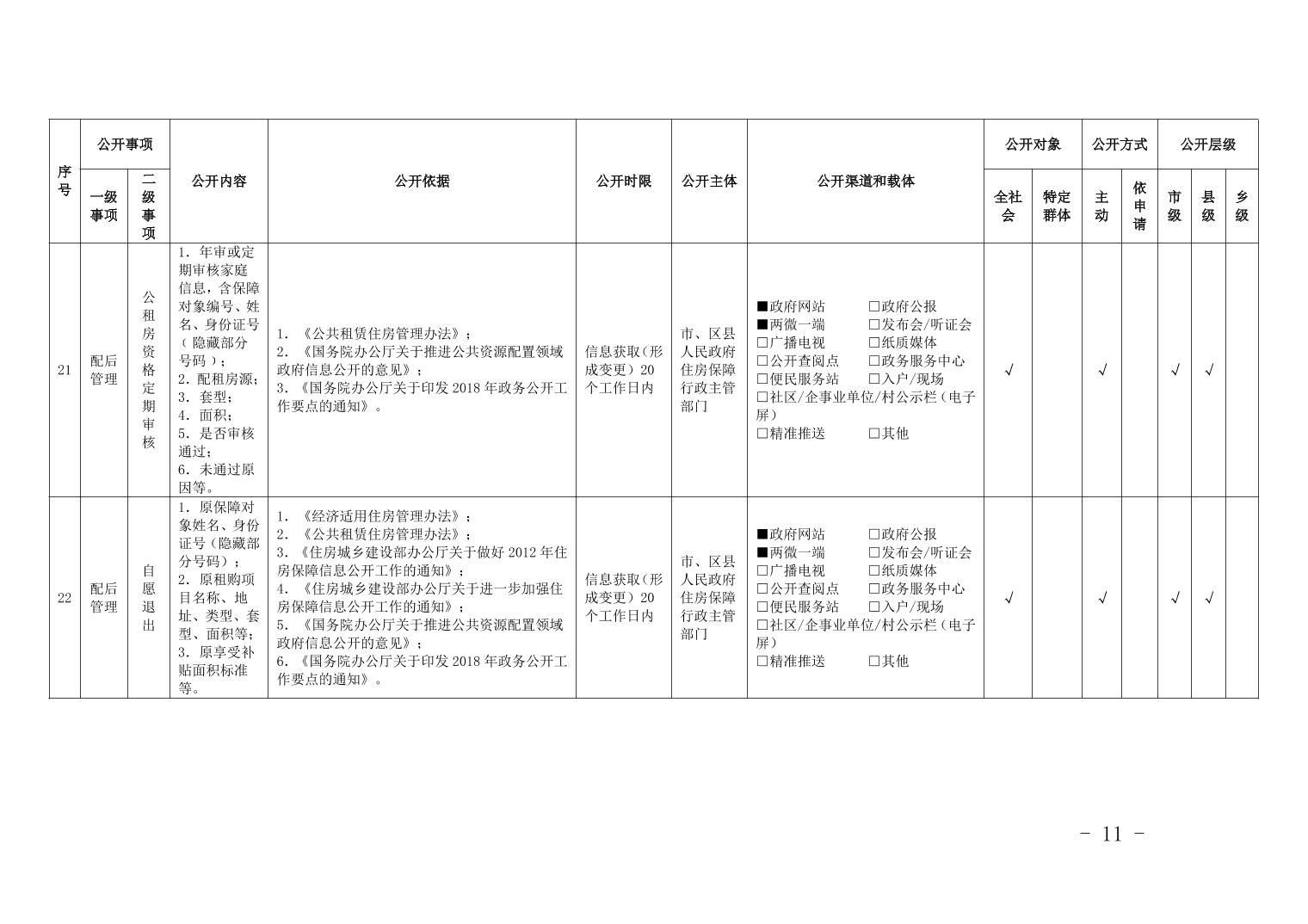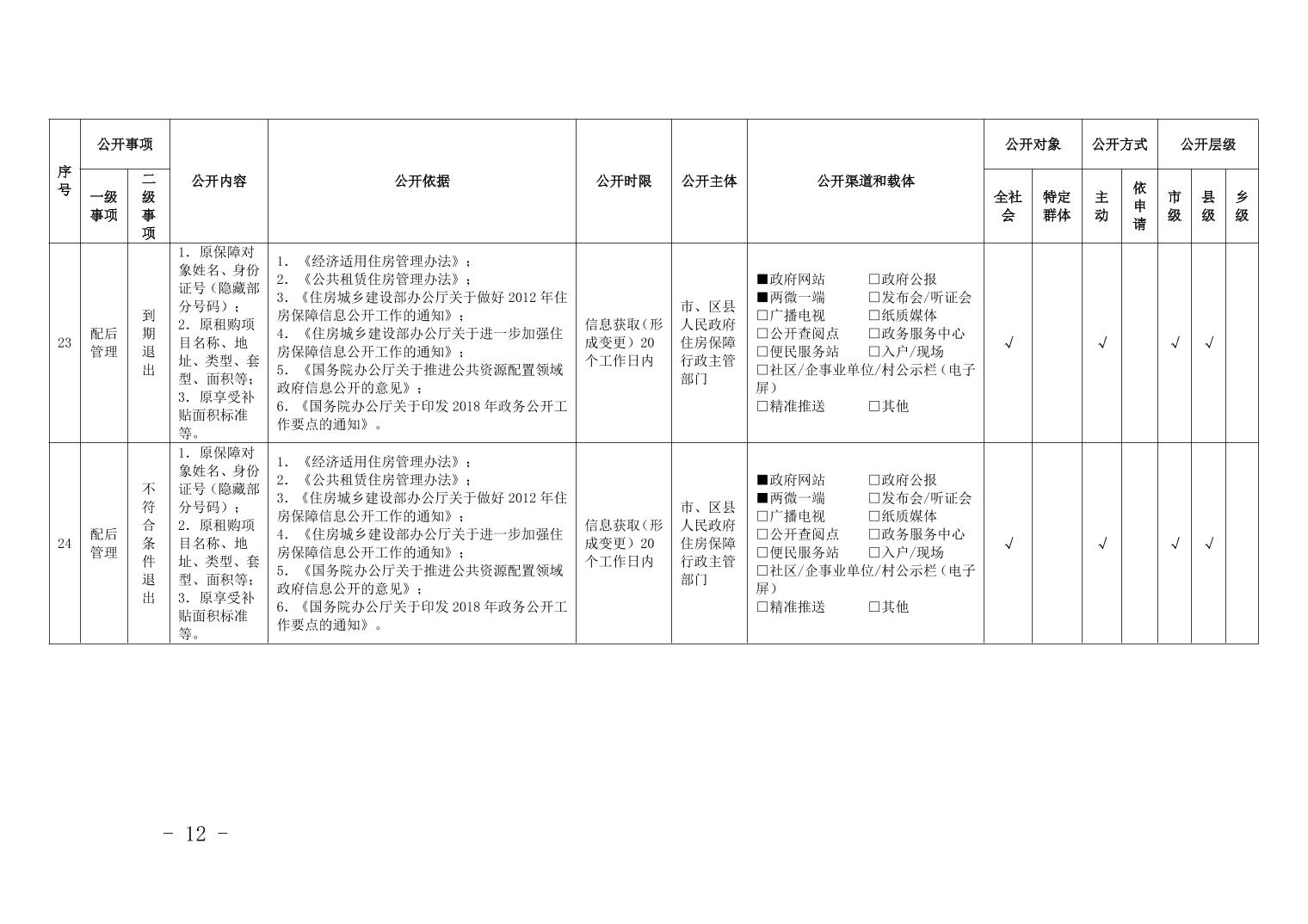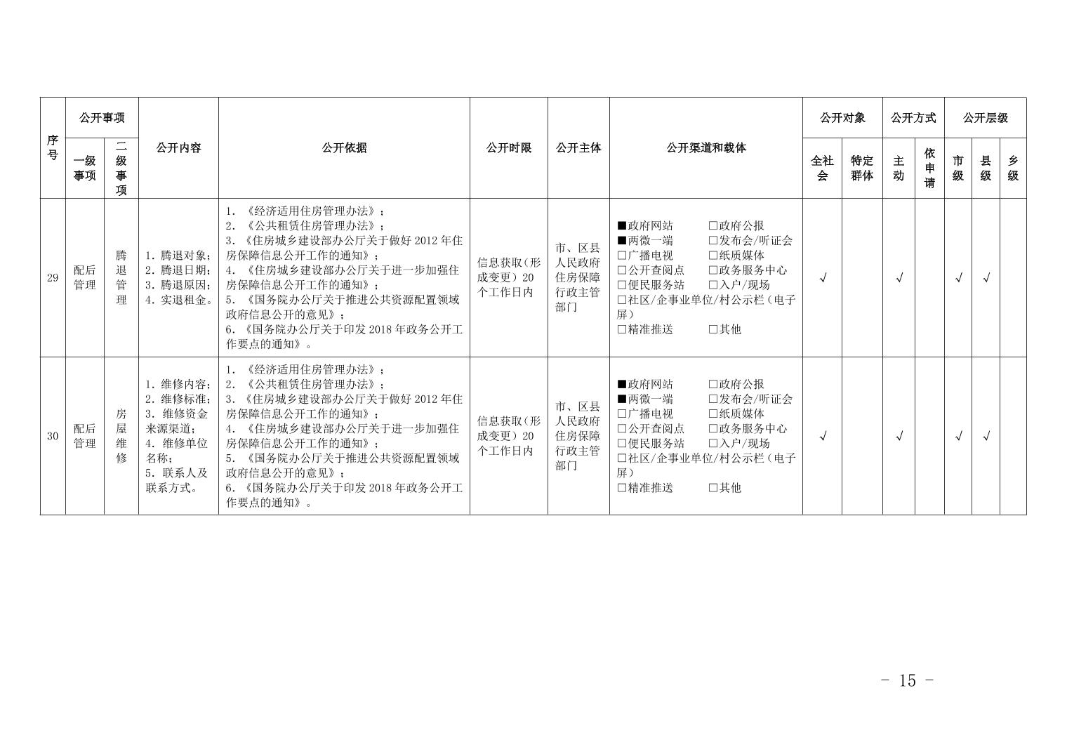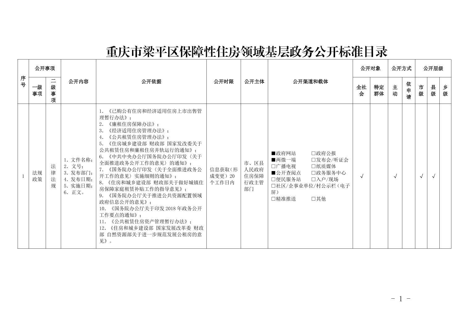 重庆市梁平区保障性住房领域基层政务公开标准目录