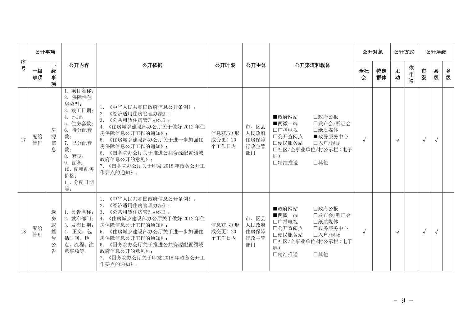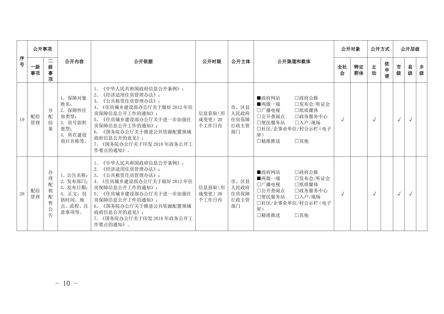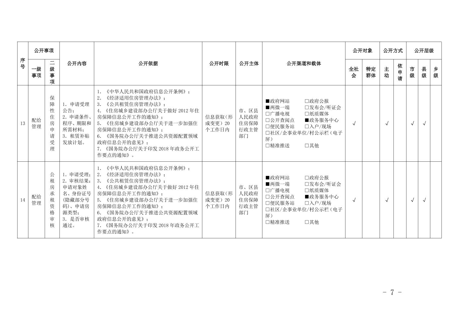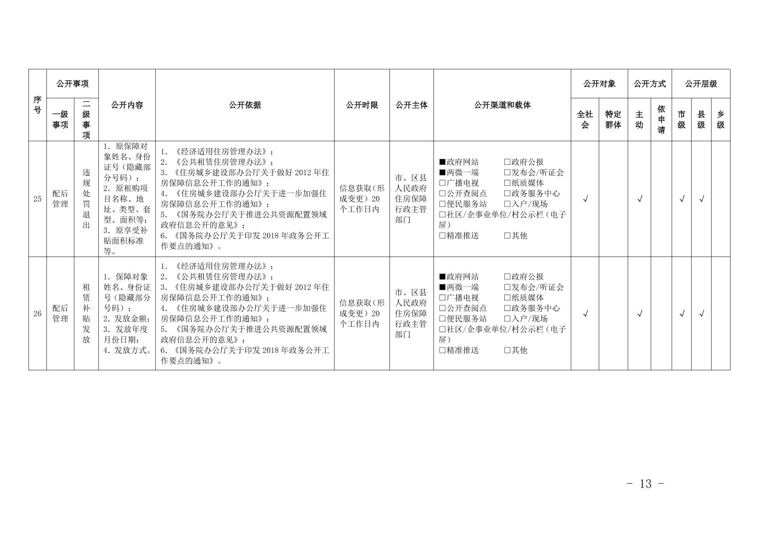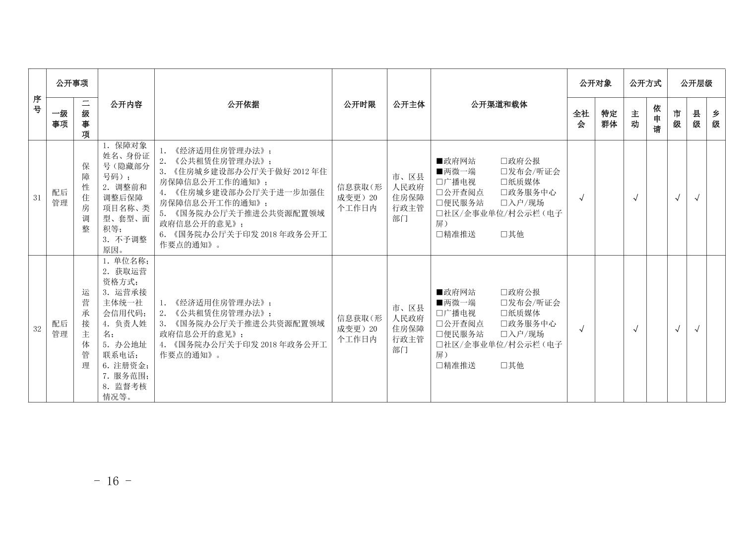 重庆市梁平区保障性住房领域基层政务公开标准目录