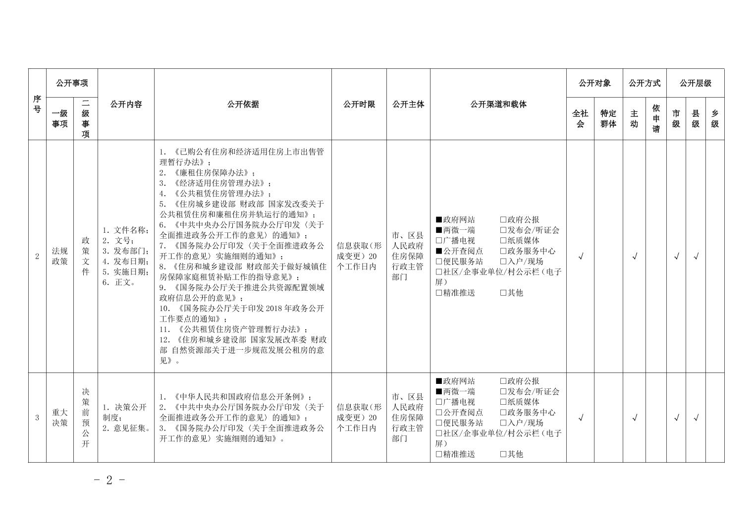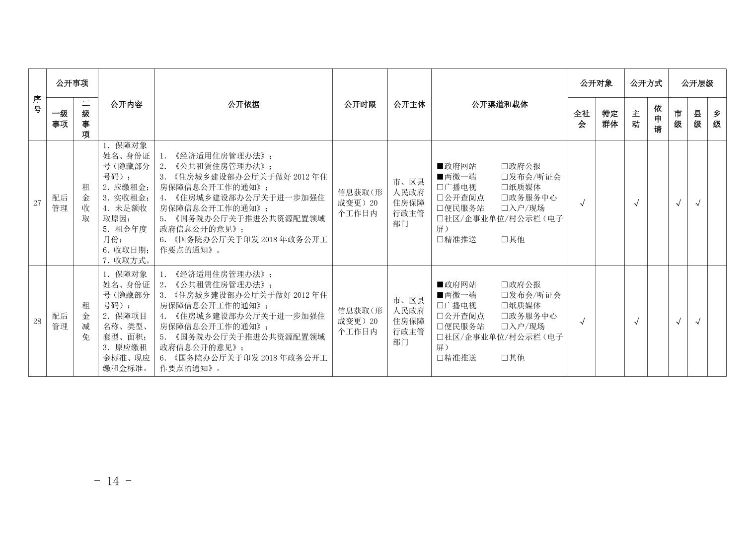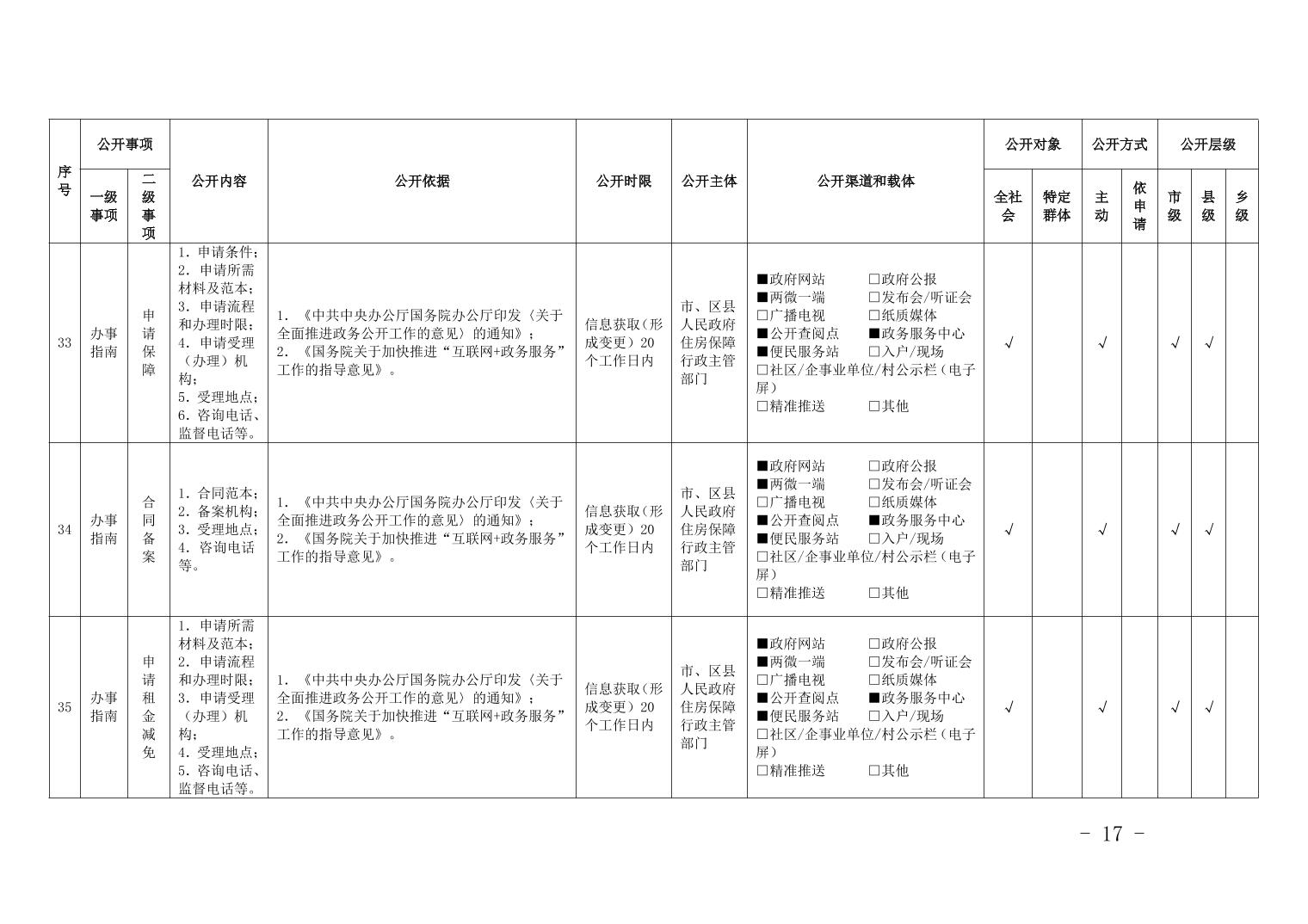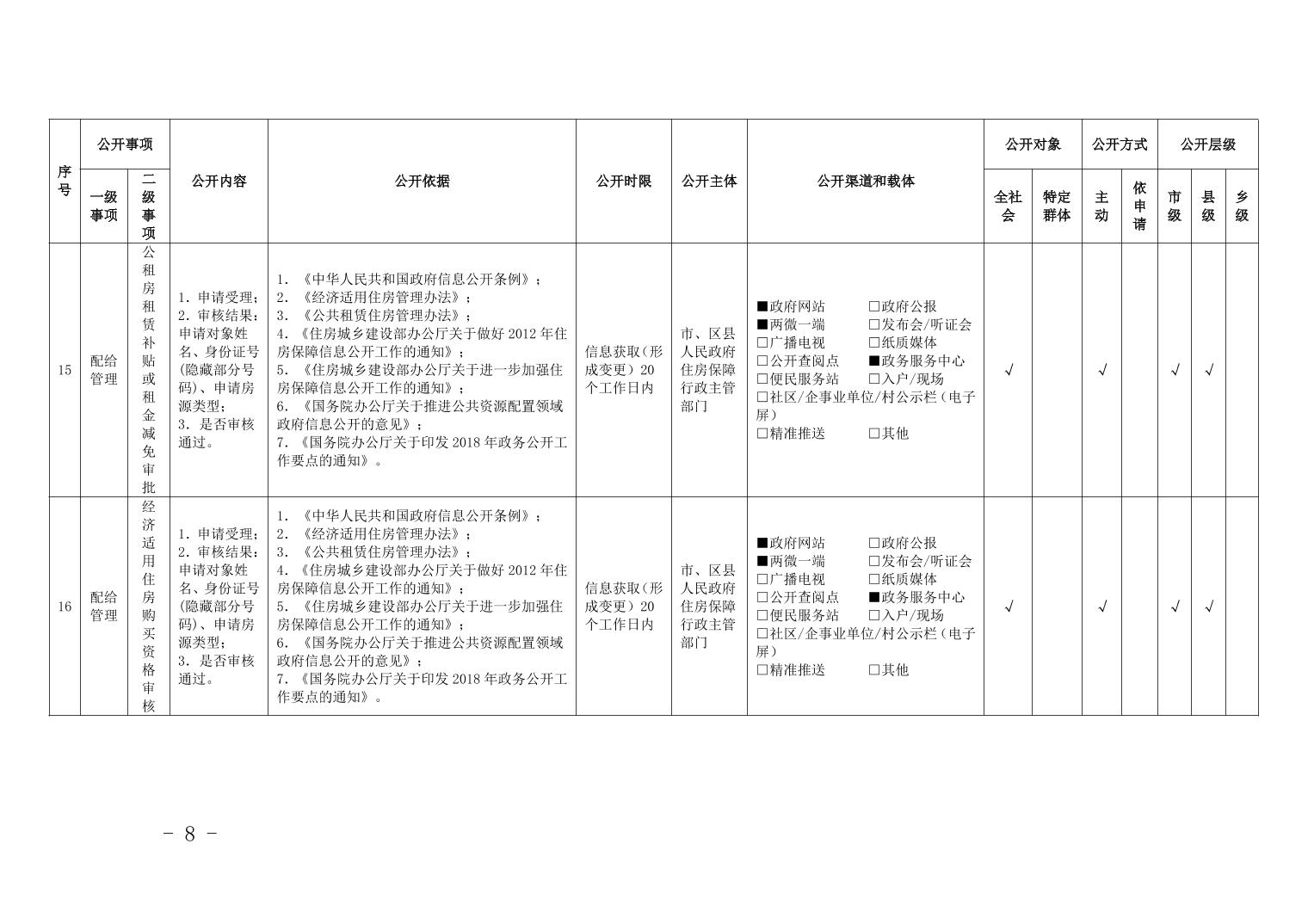 重庆市梁平区保障性住房领域基层政务公开标准目录