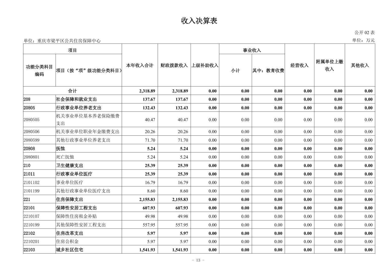 标题 | 重庆市梁平区公共住房保障中心决算公开说明及公开报表(单位) |