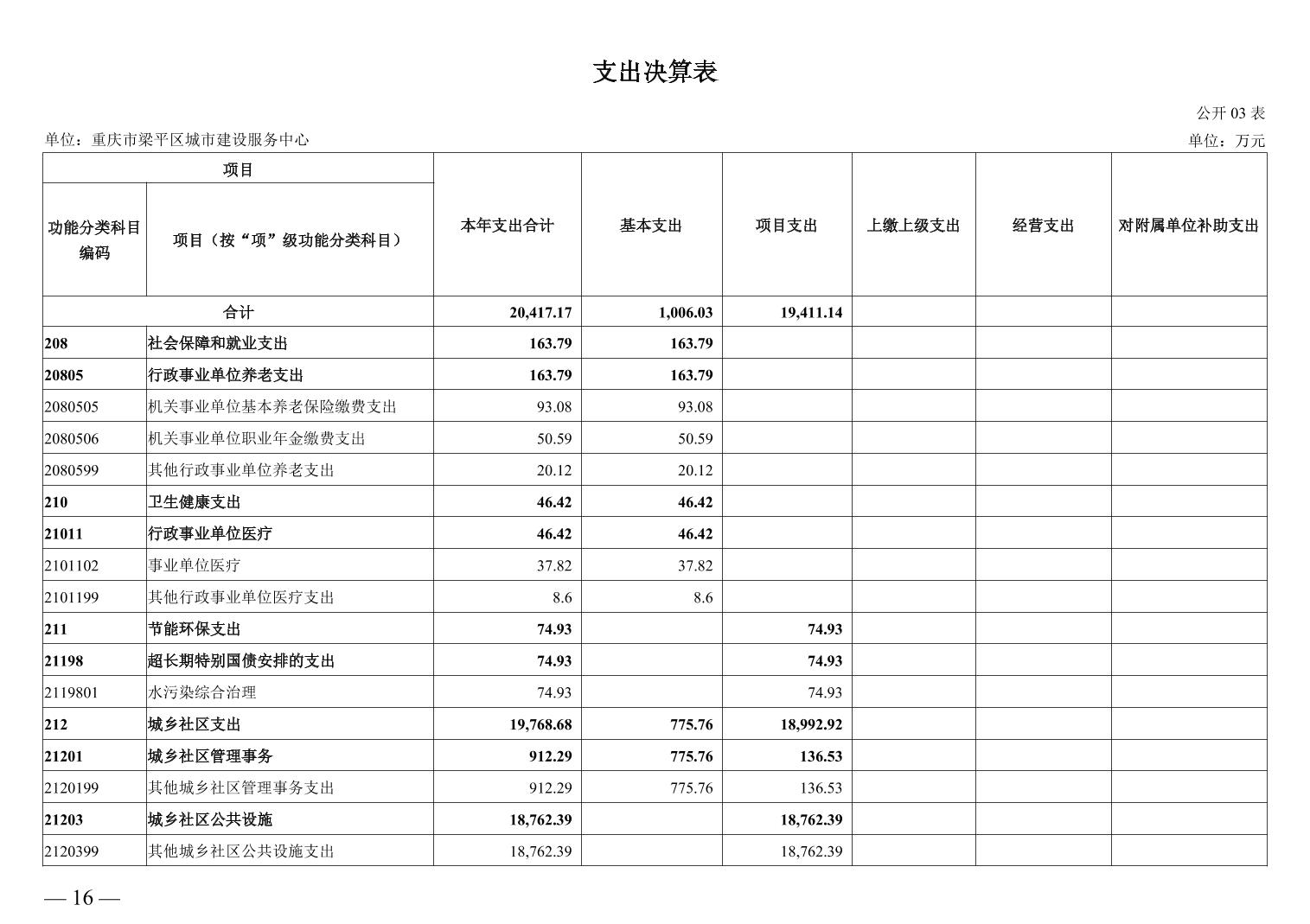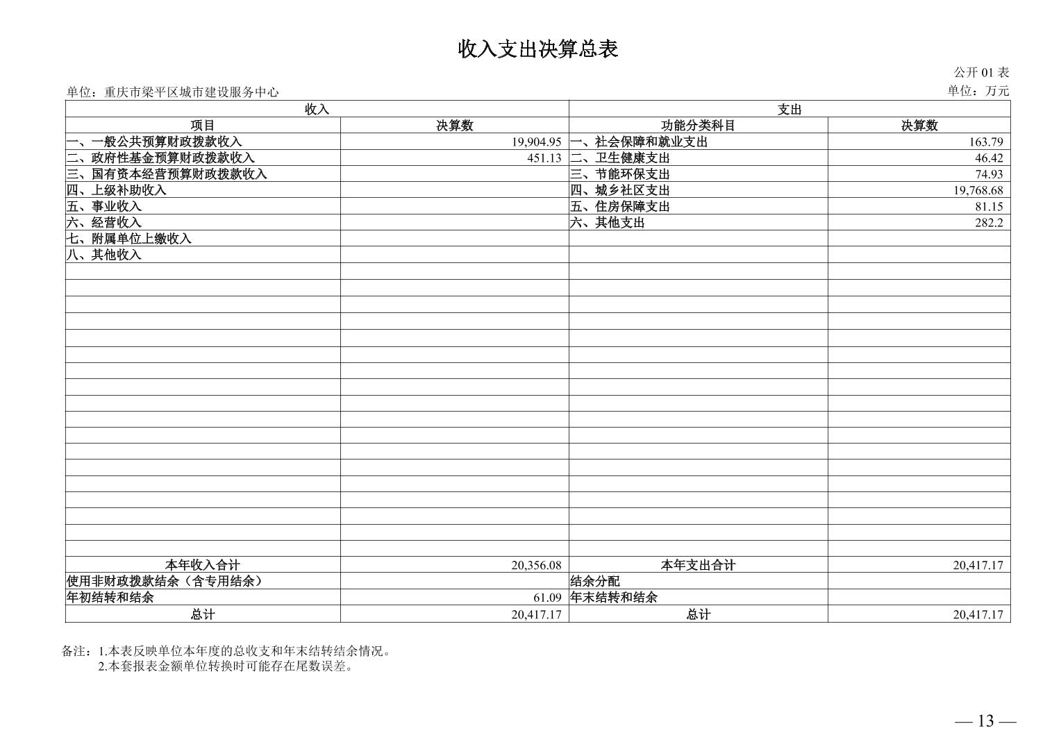 标题 | 重庆市梁平区城市建设服务中心2024年度决算公开说明及公开报表 |