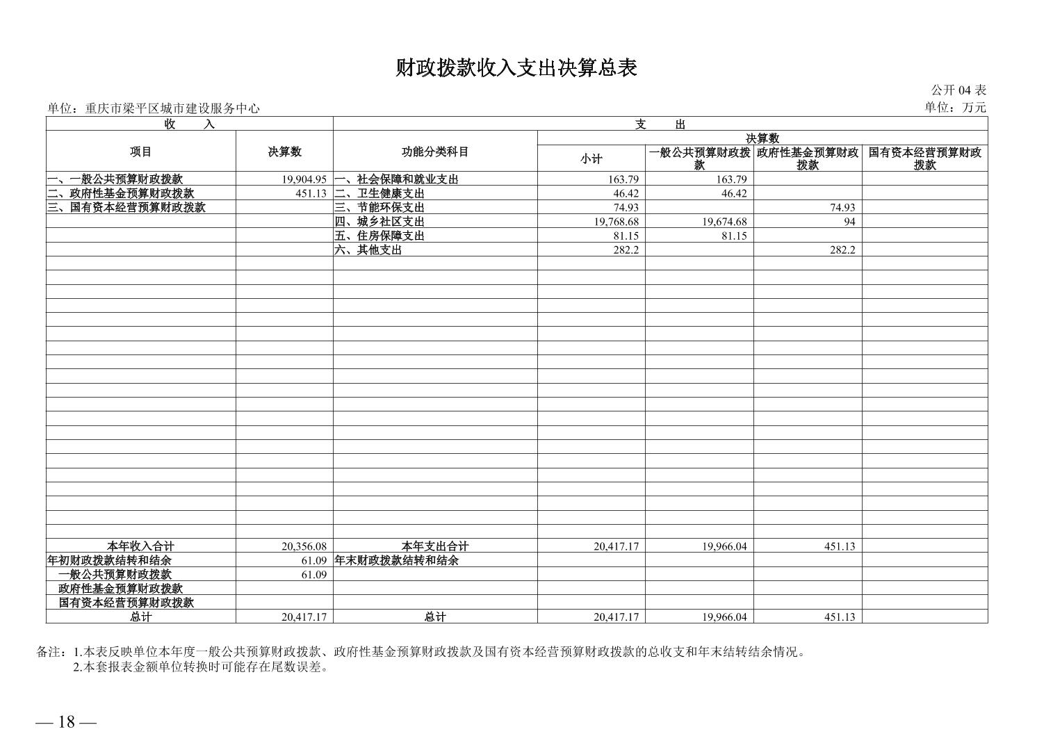标题 | 重庆市梁平区城市建设服务中心2024年度决算公开说明及公开报表 | ||