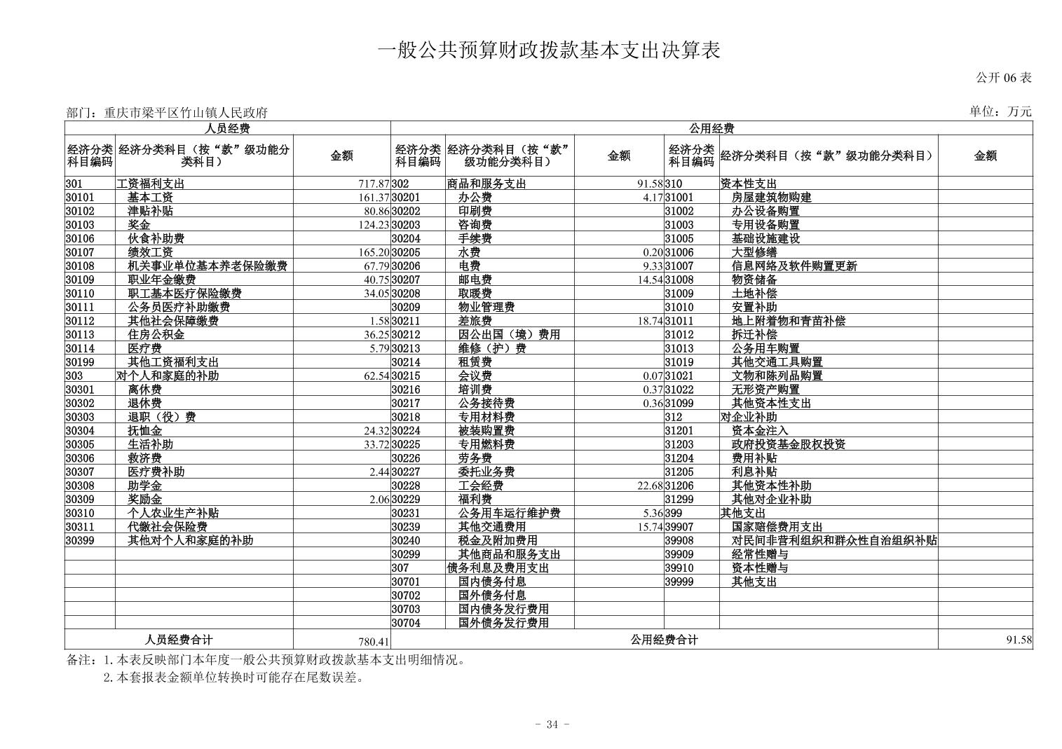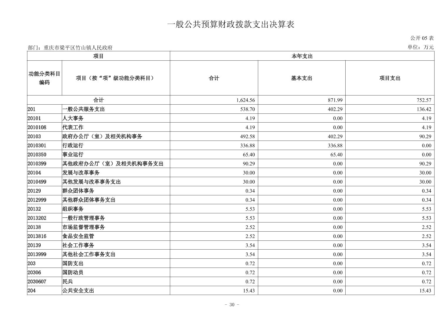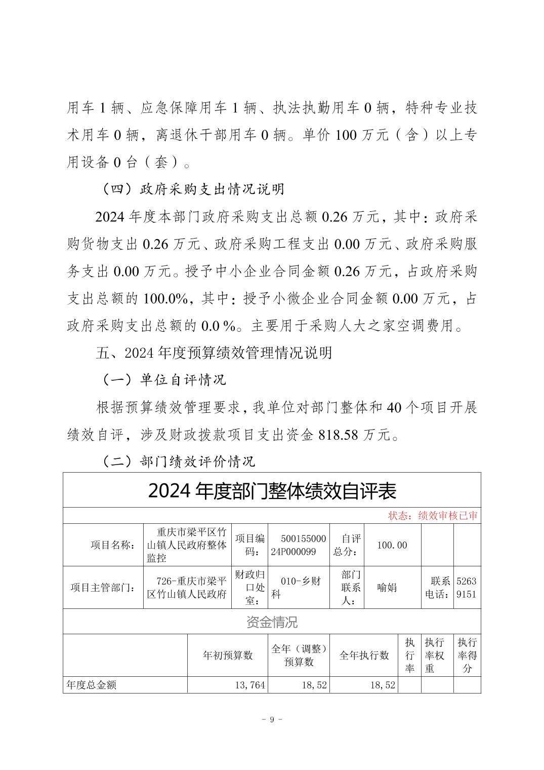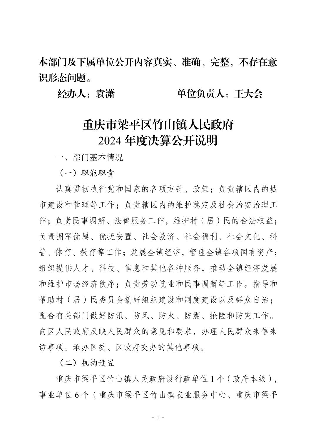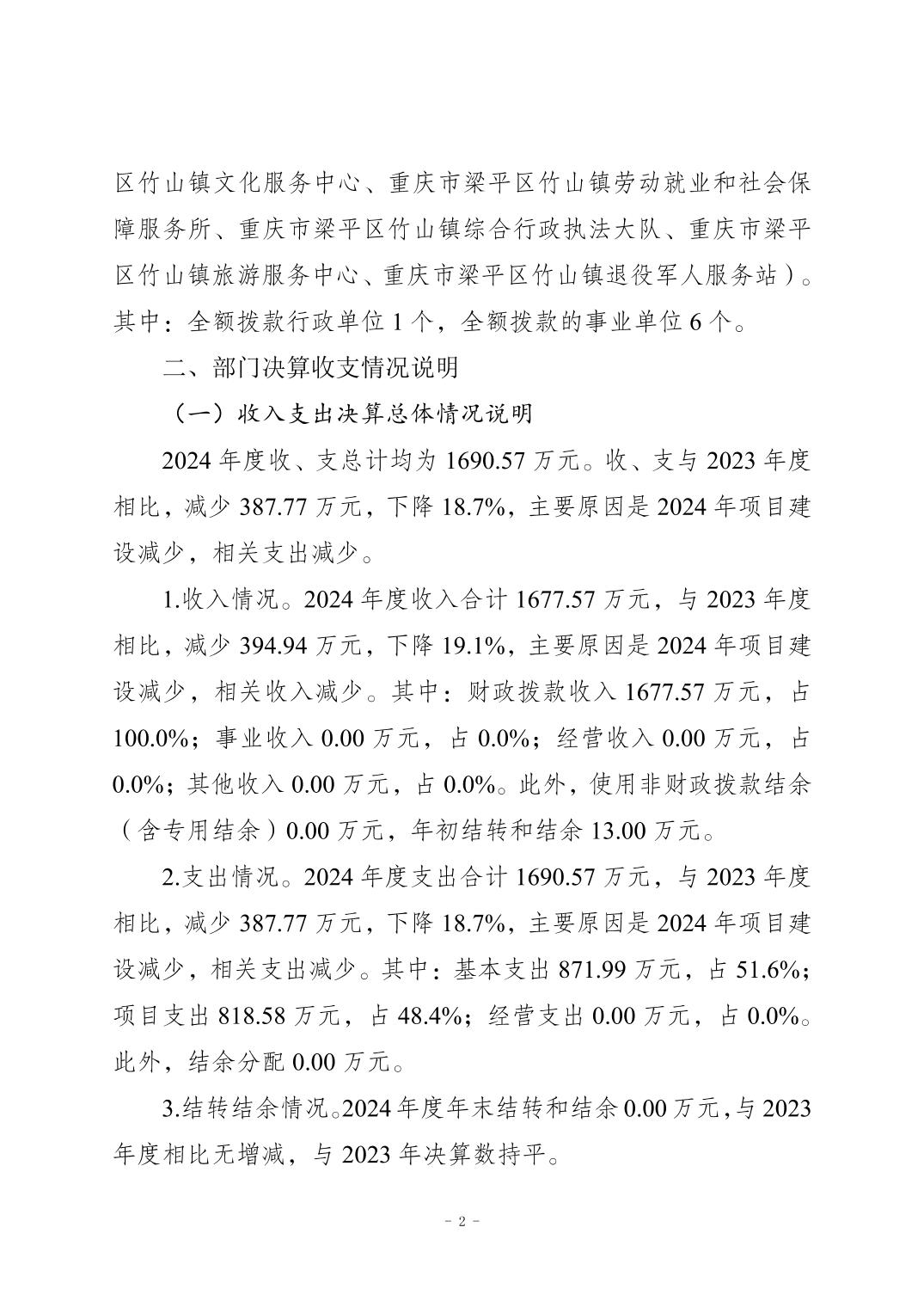 | 标题 | 重庆市梁平区竹山镇人民政府 2024年度决算公开说明 |