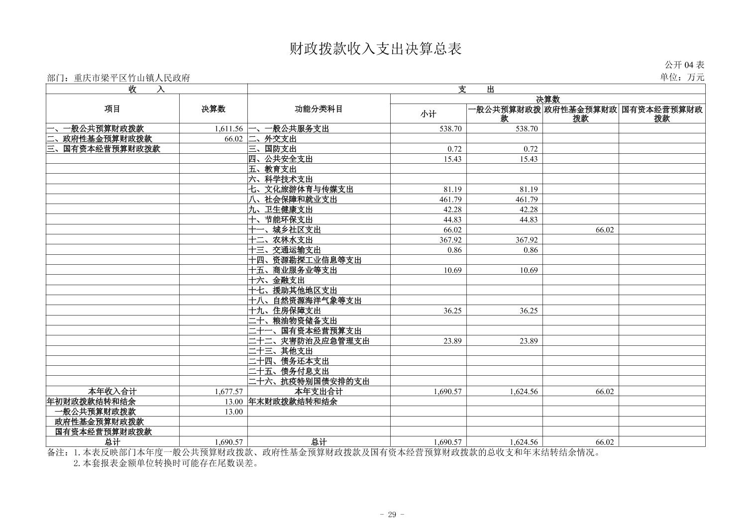 | 标题 | 重庆市梁平区竹山镇人民政府 2024年度决算公开说明 | ||