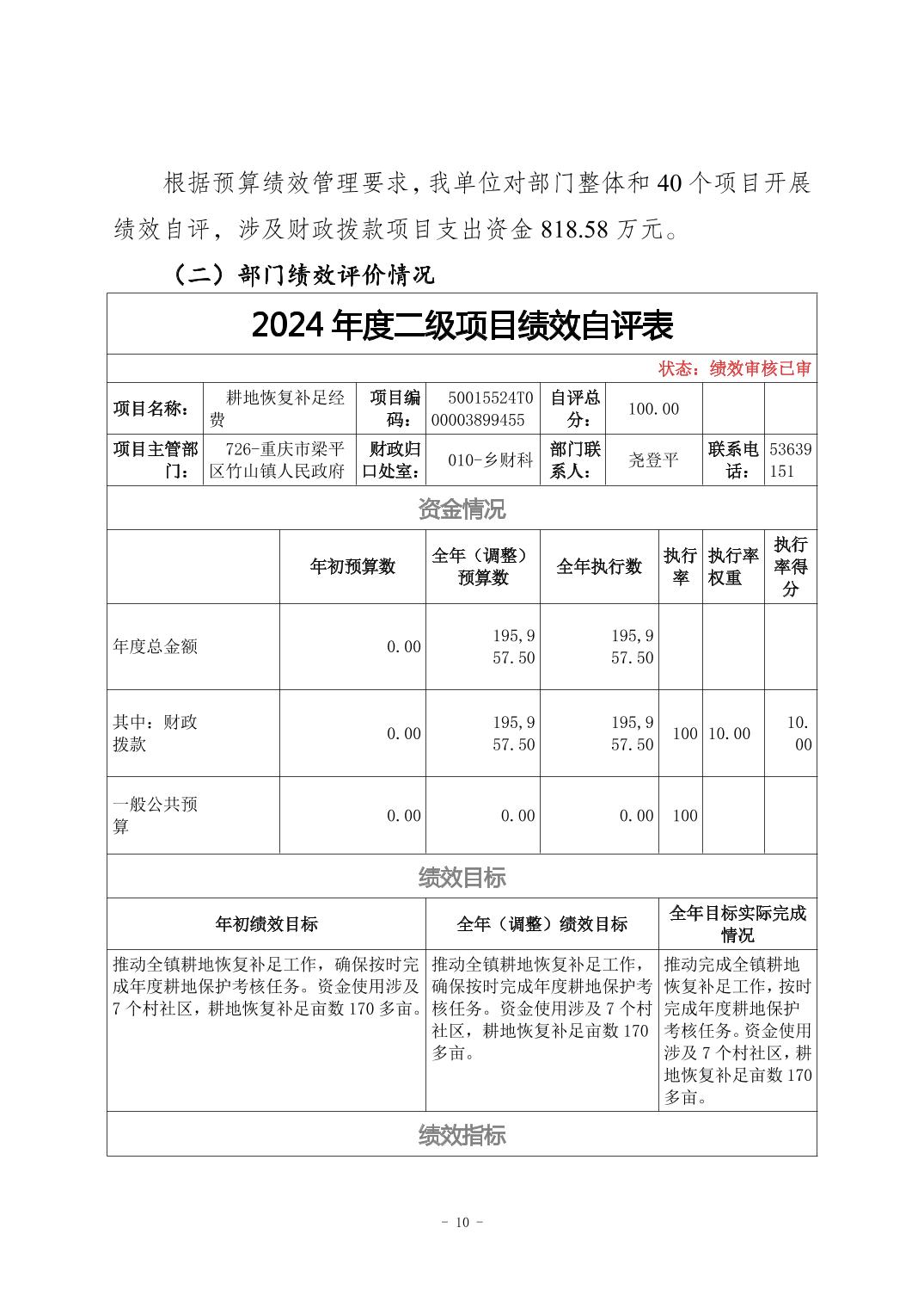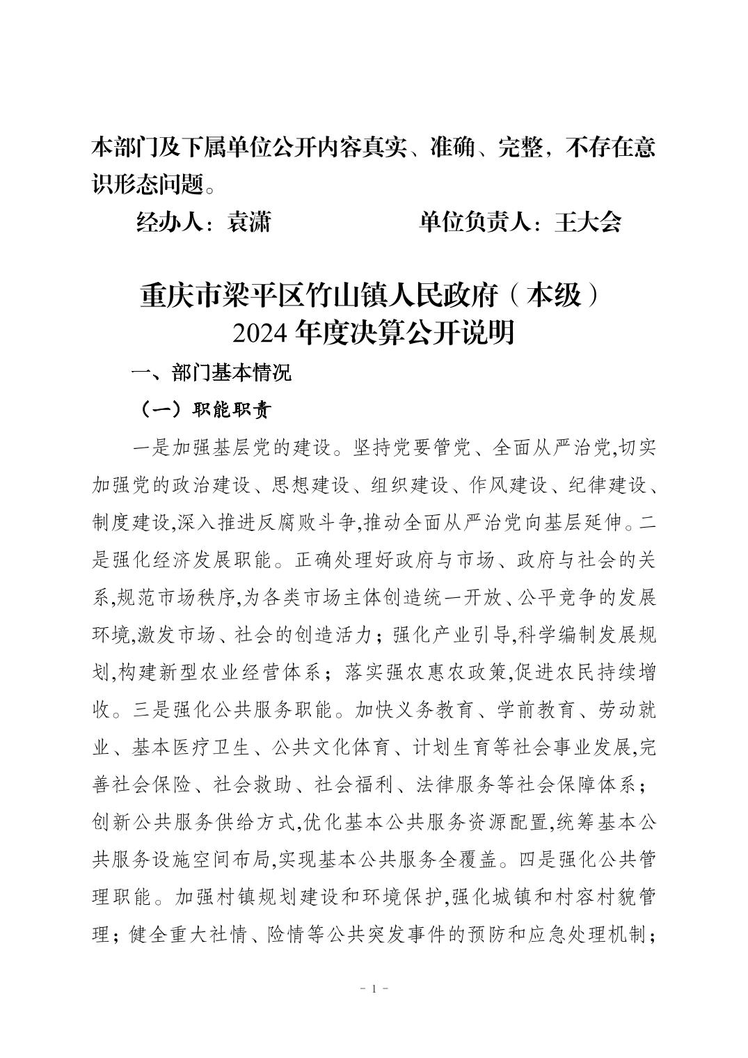 | 标题 | 重庆市梁平区竹山镇人民政府(本级) 2024年度决算公开说明 |