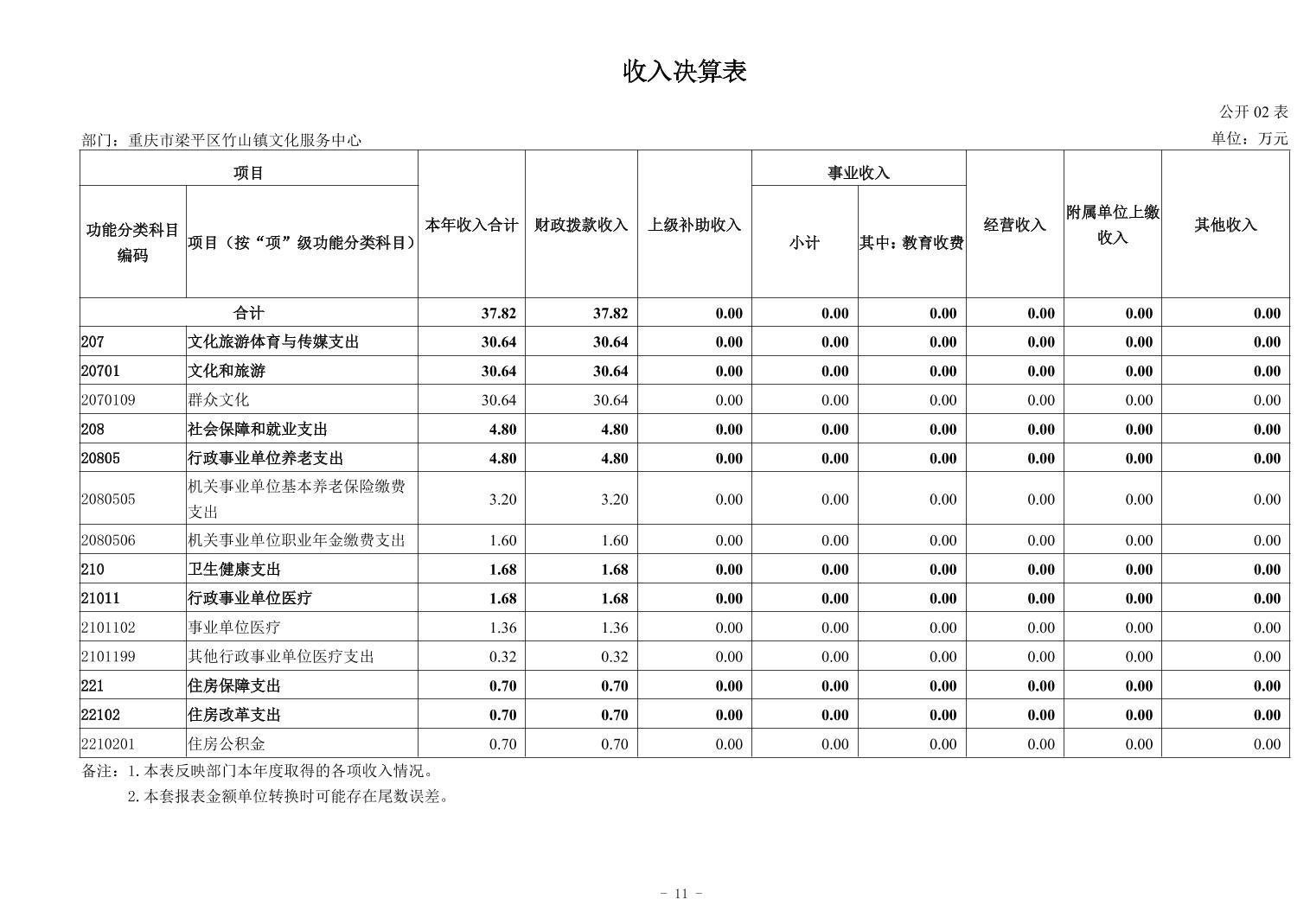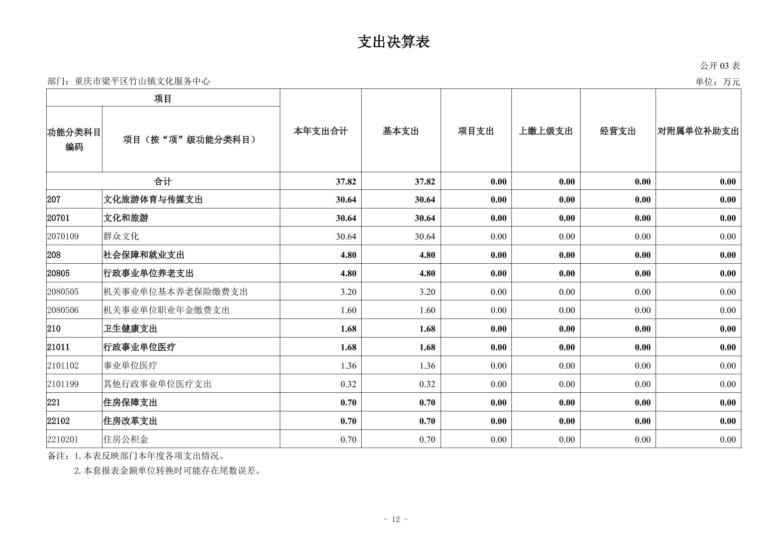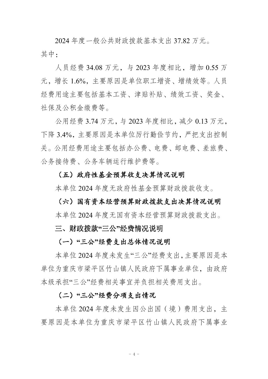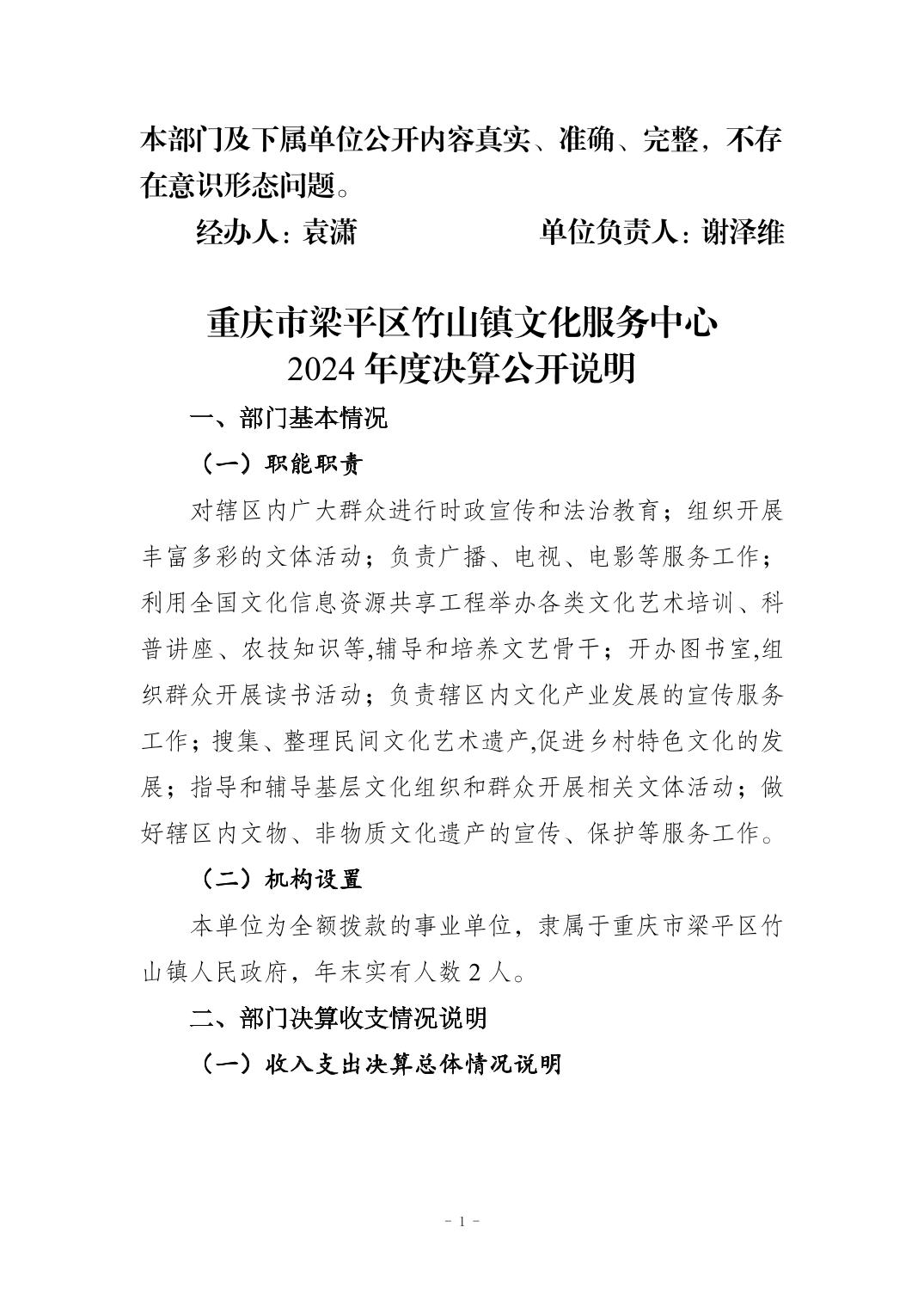 | 标题 | 重庆市梁平区竹山镇文化服务中心 2024年度决算公开说明 |