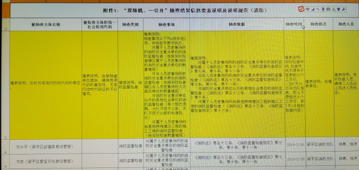 梁平区消防支队“双随机、一公开”随机抽查单位名单和检查结果公示栏