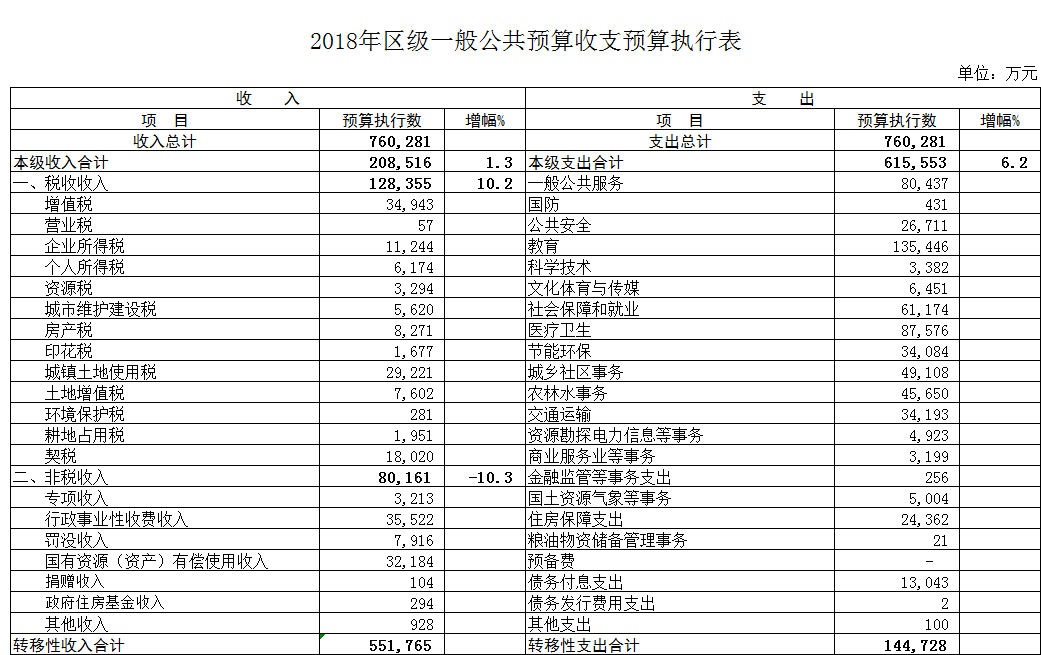 | 标题 | 2018年区级一般公共预算收支预算执行表 |