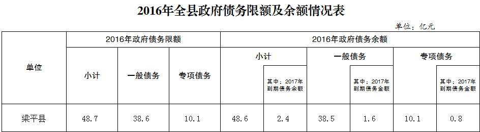 | 标题 | 2016年全县政府债务限额及余额情况表 |