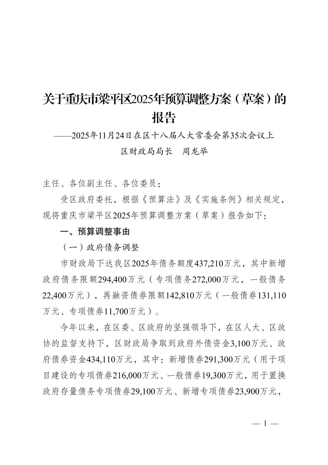 | 标题 | 关于重庆市梁平区2025年预算调整方案(草案)的报告 | ||