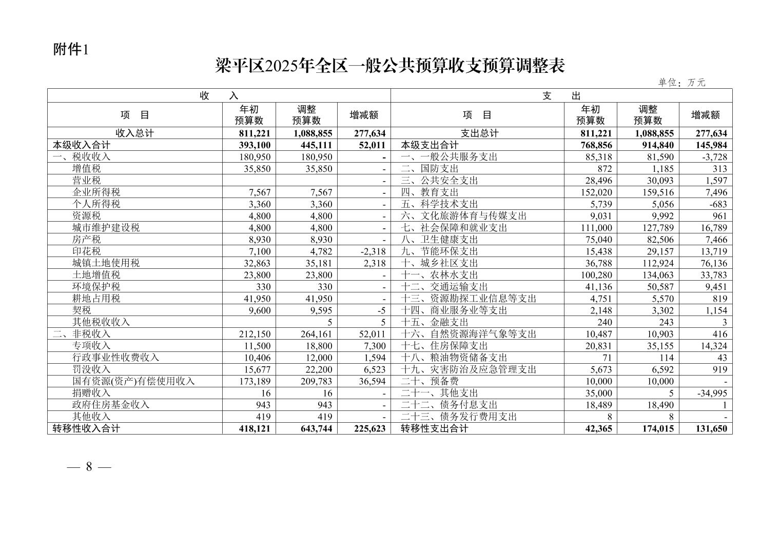 | 标题 | 关于重庆市梁平区2025年预算调整方案(草案)的报告 |