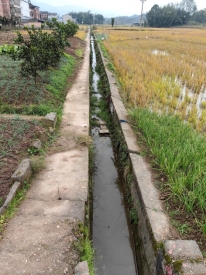 渠道淤堵,无落差,流动性差;两侧有农田,农田灌溉施肥将会对沟渠水质造成影响;有农户散养鸭子入渠;渠道旁约有4户农户洗衣洗菜废水直排入渠