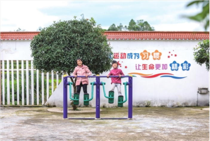 近日,屏锦镇横梁村文化广场,小朋友在开心地玩耍。记者 熊 伟 摄