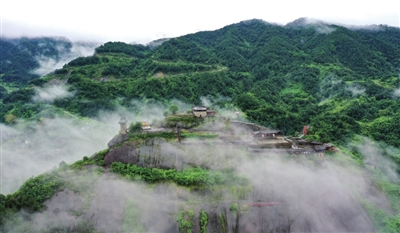 深秋时节,滑石古寨景区云雾缭绕,宛若仙境。