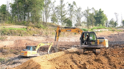3月21日,记者在安胜镇高峰村七组高标准农田建设现场看见,十几台挖掘机正在有序作业,远远望去,沟渠、田块平整划一,呈现出田成片、路成网的景象。“还有两三天就能全部完工,泡田打浆后的田块可以立马使用,正好赶上村民种水稻。”安胜镇高峰村高标准农田建设项目负责人熊钊介绍。