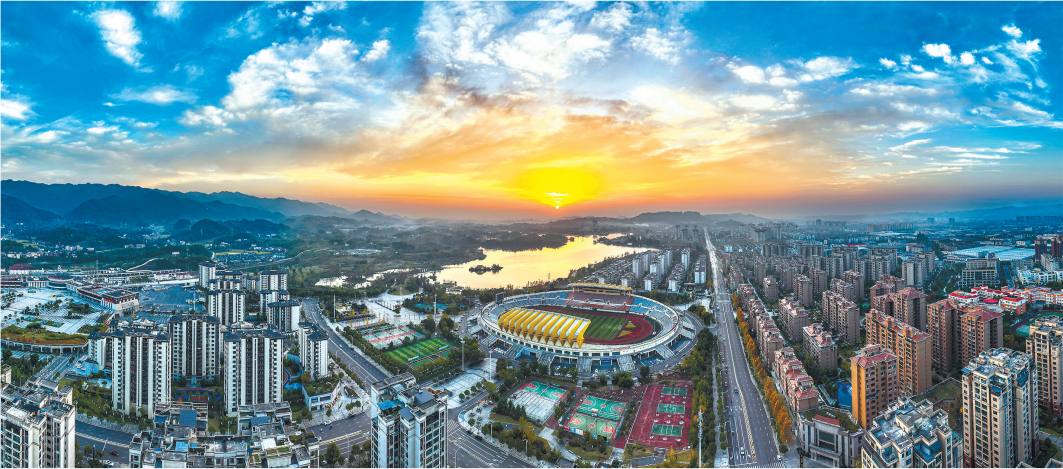 近日,俯瞰双桂城区,城市、湖泊、晚霞交相辉映,美不胜收。近年来,梁平牢固树立和践行绿水青山就是金山银山理念,坚定不移走生态优先、绿色发展之路,奋力推动生态环境“高颜值”和城市生活“高品质”互动并进,为美丽梁平建设打下了坚实基础。记者 熊 伟 摄
