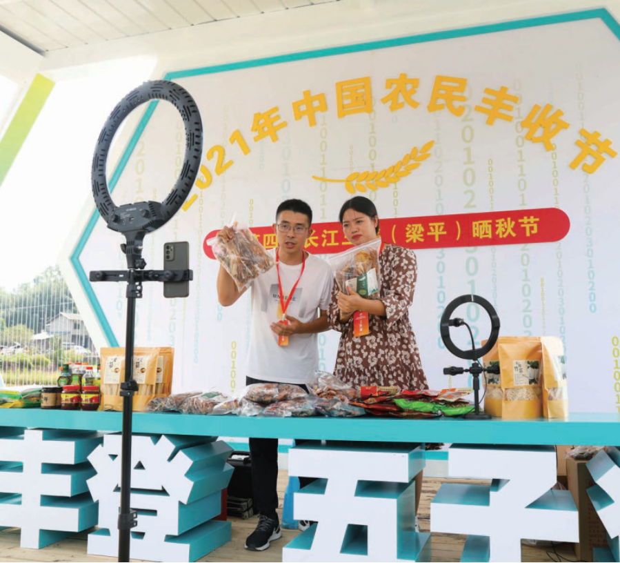 梁平区电商达人在田园直播间销售梁平农特产品。摄/刘辉