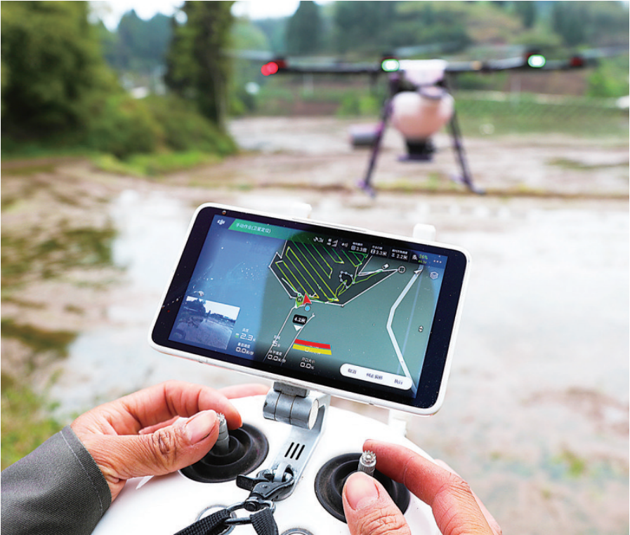 梁平区飞手操纵无人机在碧山镇川主村平整好的田块上进行种子直播。摄/刘辉