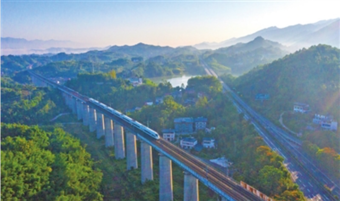 2016年11月28日,梁平的第一班高铁列车从渝万高铁梁平南站驶出,宣告梁平进入“高铁时代”,正式融入重庆主城“一小时经济圈”。自此,梁平经济社会发展如虎添翼,90多万梁平人出行也有了更多选择。