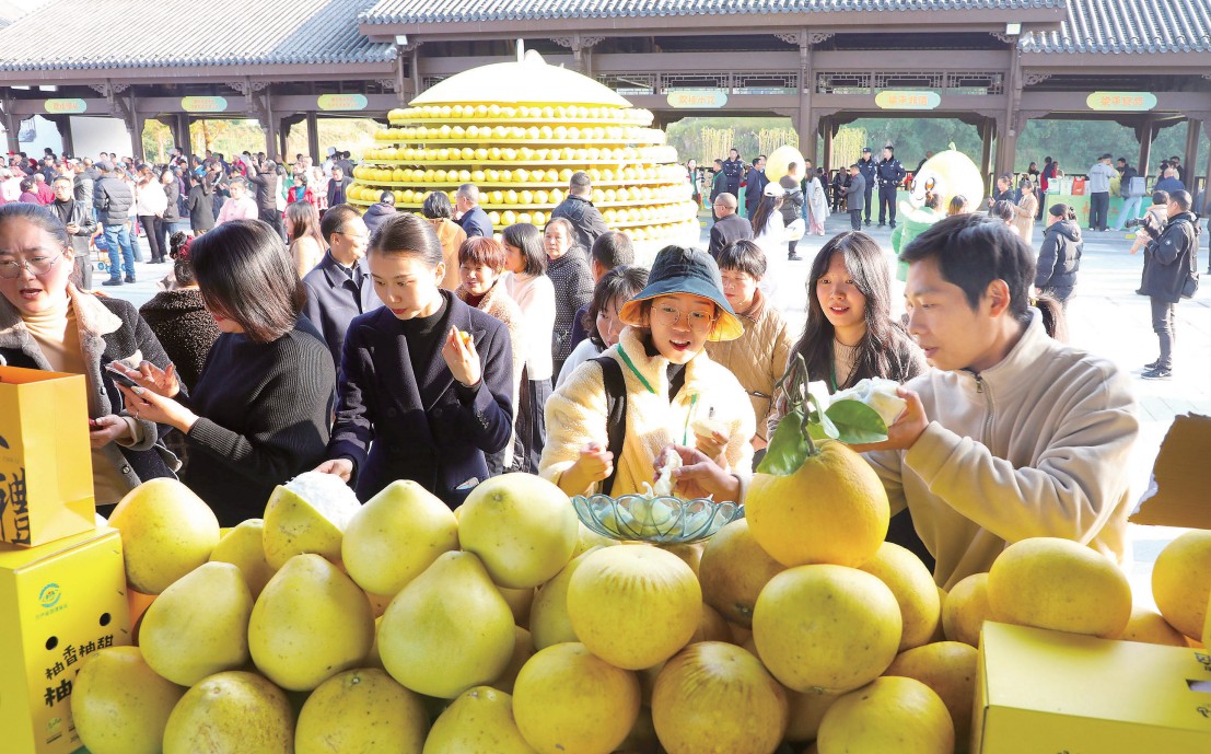 11月25日,双桂田园景区,第八届长江三峡(梁平)柚产业发展大会开幕式现场,游客在购买梁平柚。记者 熊 伟 摄