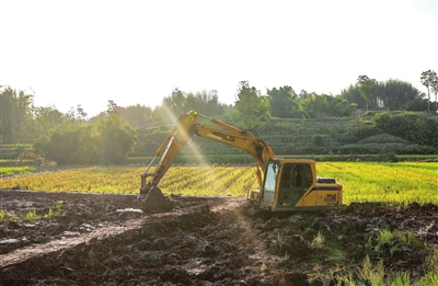 近日,仁贤街道长龙村,挖掘机在进行高标准农田田块改造。