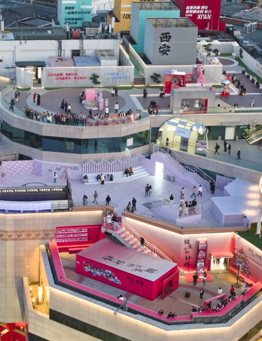 2025年3月19日,游客在西安开元商城观景平台上拍照游玩(无人机照片)。新华社记者 邵瑞 摄